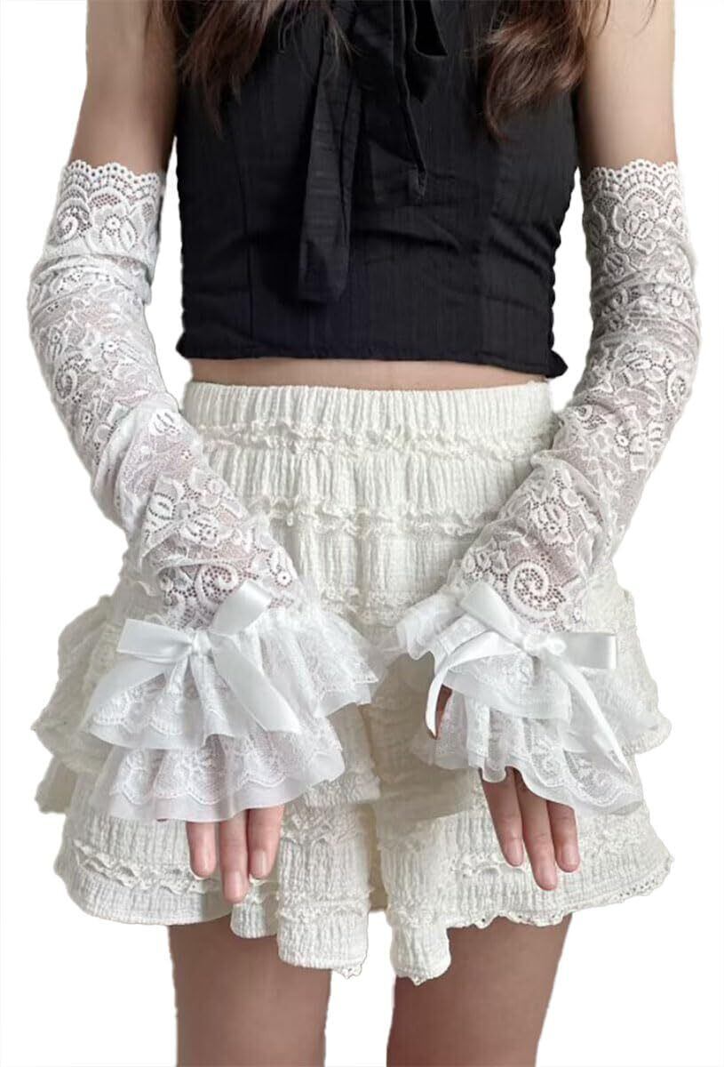【人気商品】[Ekieta] アームウォーマー レディース つけ袖 レースフリル アームスリーブ 薄手 花柄 指掛けタイプ かわいい ロリータ 袖口積み重ね ちょう結び おしゃれ y2k 日焼け止め ガーリー系 お姫様 地雷系 | maimaiwalnut
