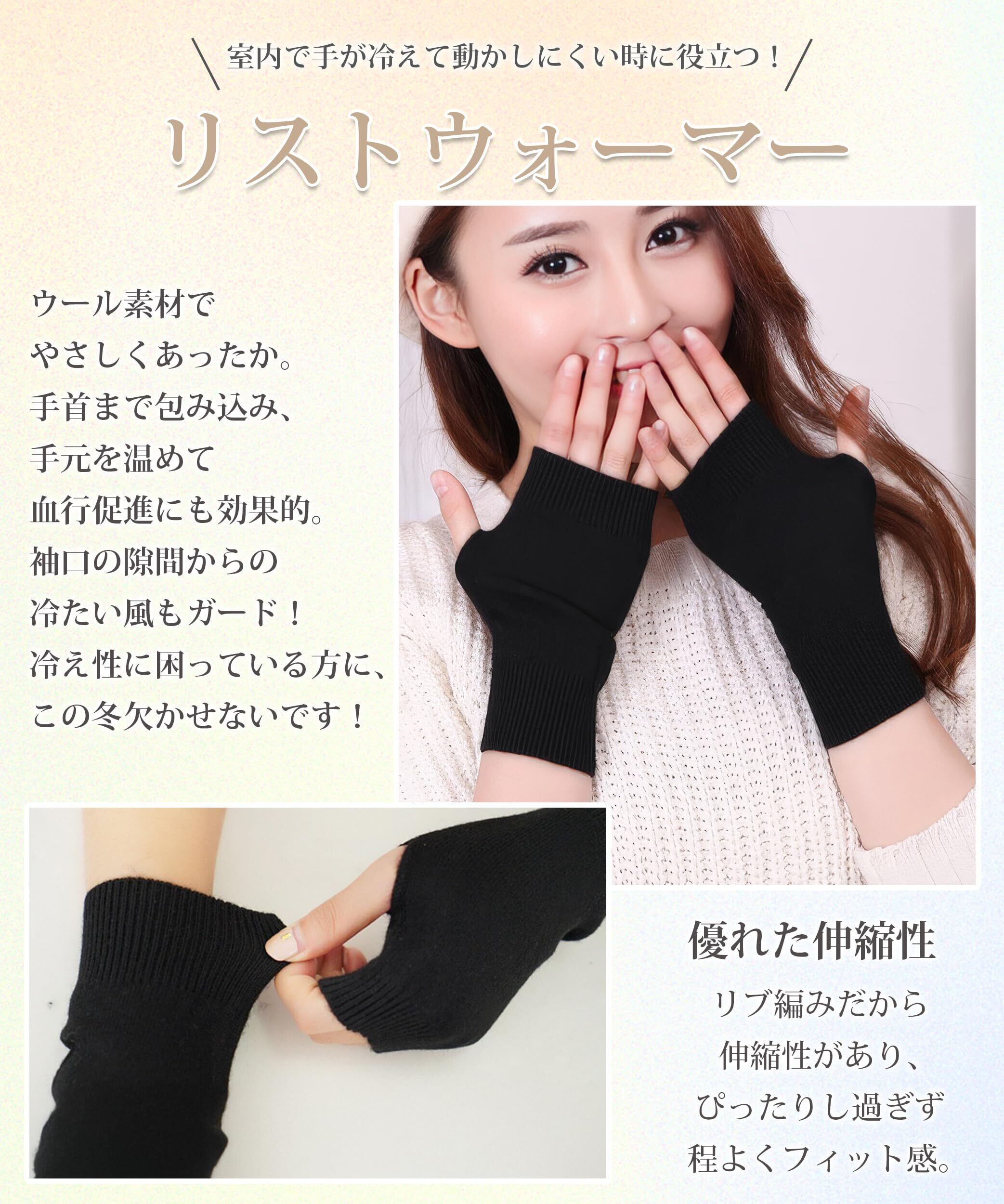 【人気商品】[PALAME] 手首ウォーマー レディース リストウォーマー 【60%ウール・滑らかタッチ・操作便利な指なし設計】 アームカバー 半指 手袋 保温 冷え対策 冷房対策 暖かい 柔らか 親指穴付き スマホ操作 通勤 通学 運転用 秋冬