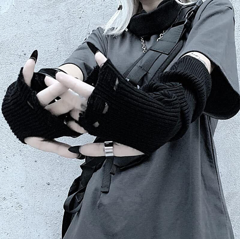 【特価セール】[優億] アームウォーマー レディース ロックファッション おしゃれ アームカバー 半指 手袋 指なしデザイン感 人気 腕カバー かっこいい 防寒 グローブ 小物 男女兼用 ストリート系 | maimaiwalnut