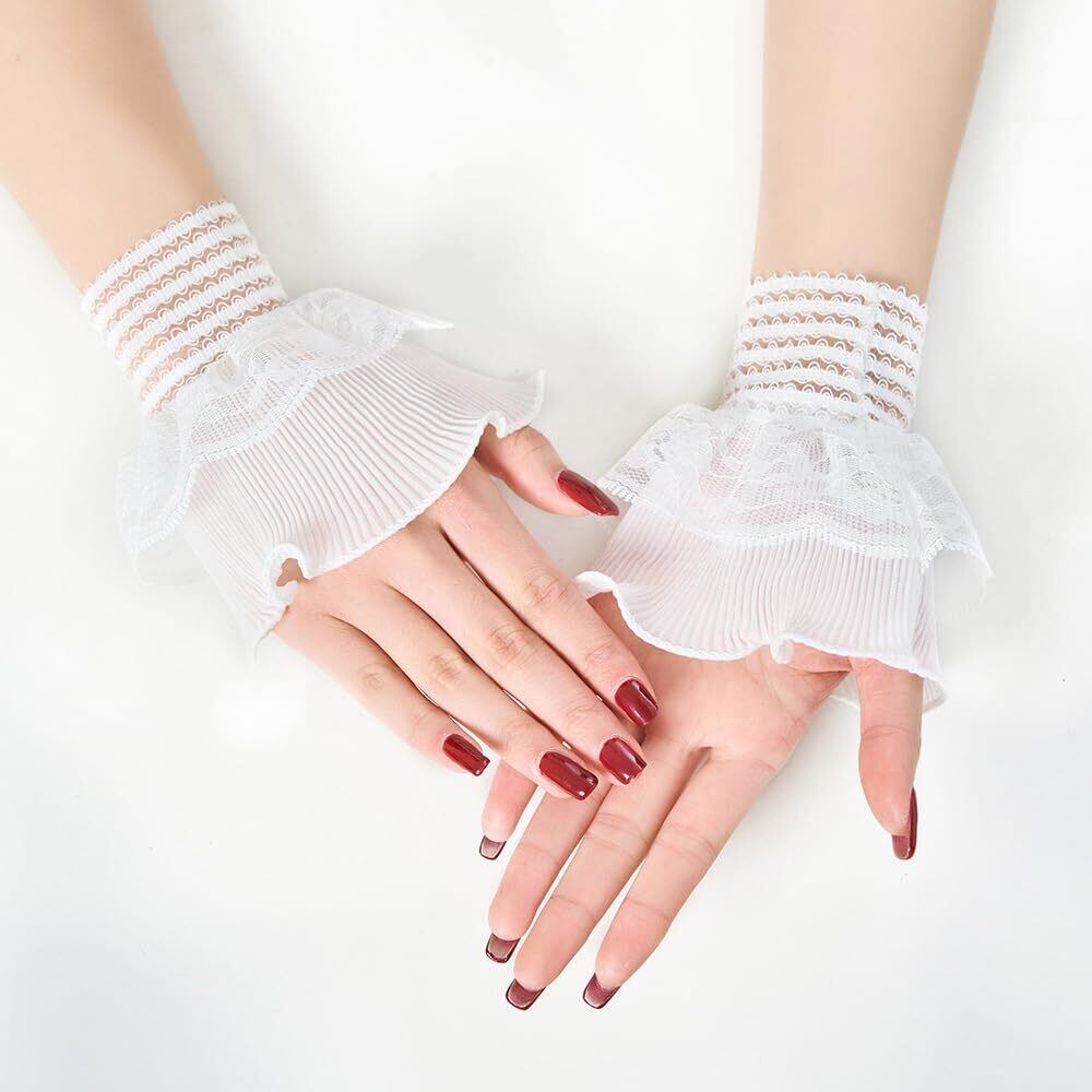 【在庫セール】[fourfivesixはる] つけ袖 レース ロリータ チャーム ガールズ 腕飾り 黒白2組4個セット 超キュート お袖留め 偽カフス 腕飾り フレア袖口 レディース きれい 替え袖 レイヤード 可愛い おしゃれ | maimaiwalnut