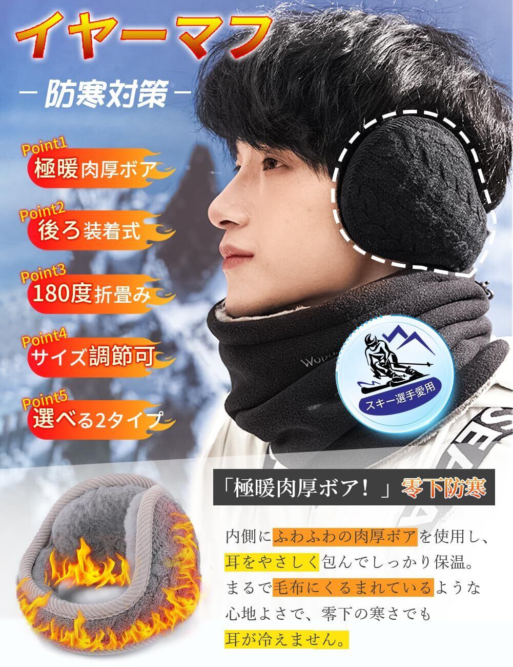 【在庫処分】[GAOTEK] スキー運動が愛用 イヤーマフ 防寒 イヤーウォーマー 【極暖肉厚ボア・後ろ装着式 】 耳あて 耳当て 耳カバー 冬 裏起毛 ふわふわ 防寒対策 折り畳み式 サイズ調節可能 スキー 自転車 バイク 通勤 通学 男女兼用 | maimaiwalnut
