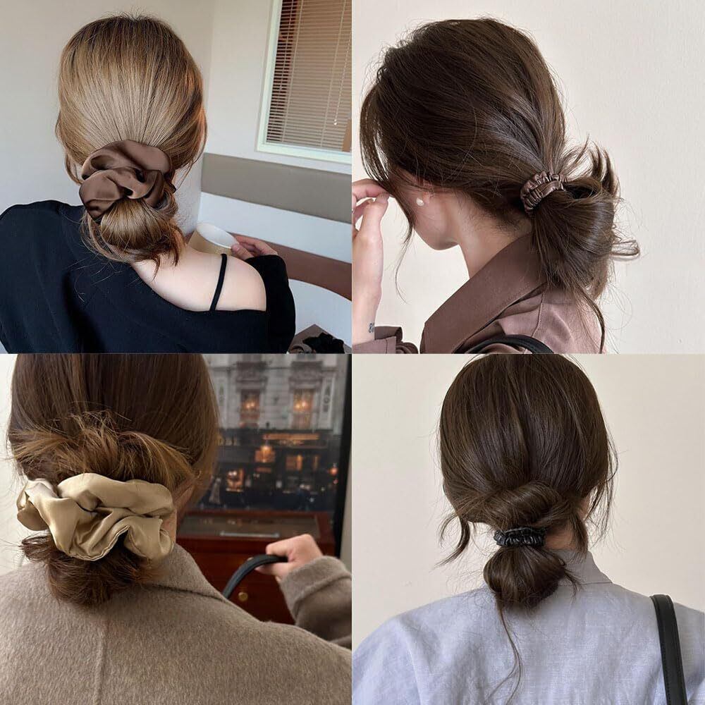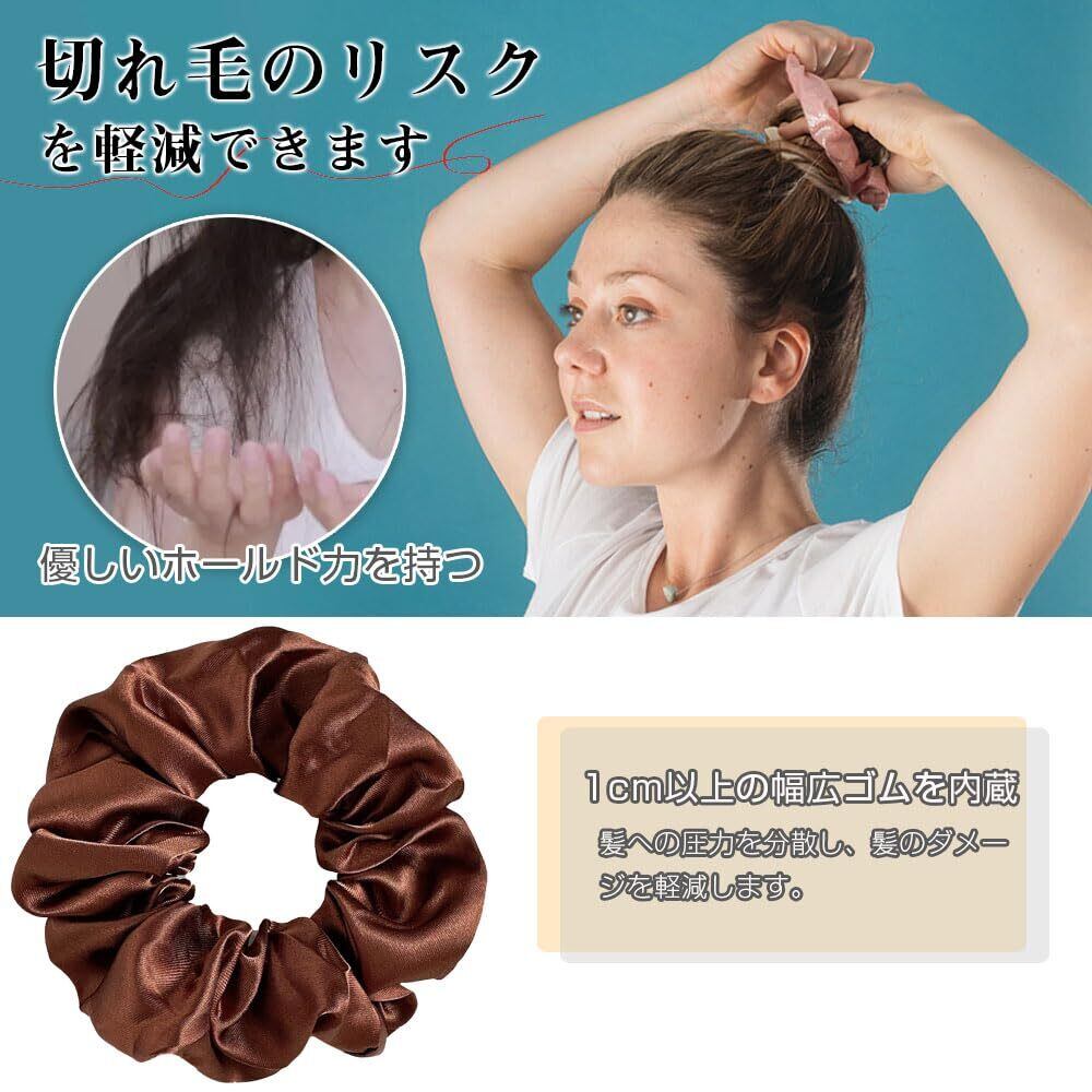 【数量限定】JetWave シルク100% シュシュ 2点セット 跡がつきにくい 太め 幅広デザイン ダメージレス 髪型アレンジ おしゃれ プレゼントにも最適(ブラック) | maimaiwalnut