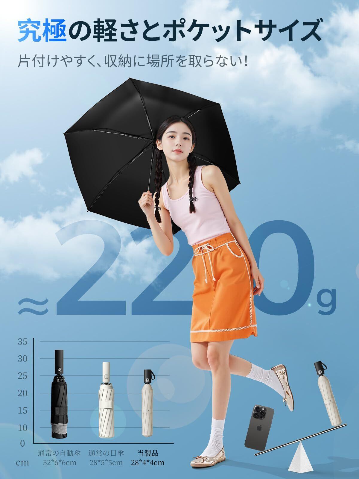 【特価セール】【JIS認証·現役皮膚科医監修】日傘 UVカット100遮光遮熱 折り畳み【業界初!改良型ワンタッチ自動開閉】UPEBおりたたみ傘 188g-230g超コンパクト 紫外線遮断 折りたたみ傘 耐風撥水 晴雨兼用 携帯便利 日傘メンズ/レディース/ガールズ/ガールズ/子供/大人兼用 収納ポーチ付き 母の日 父の日 お祝い 誕生日プレゼント2年品質 (アイボリー, 90cm直径超軽量)