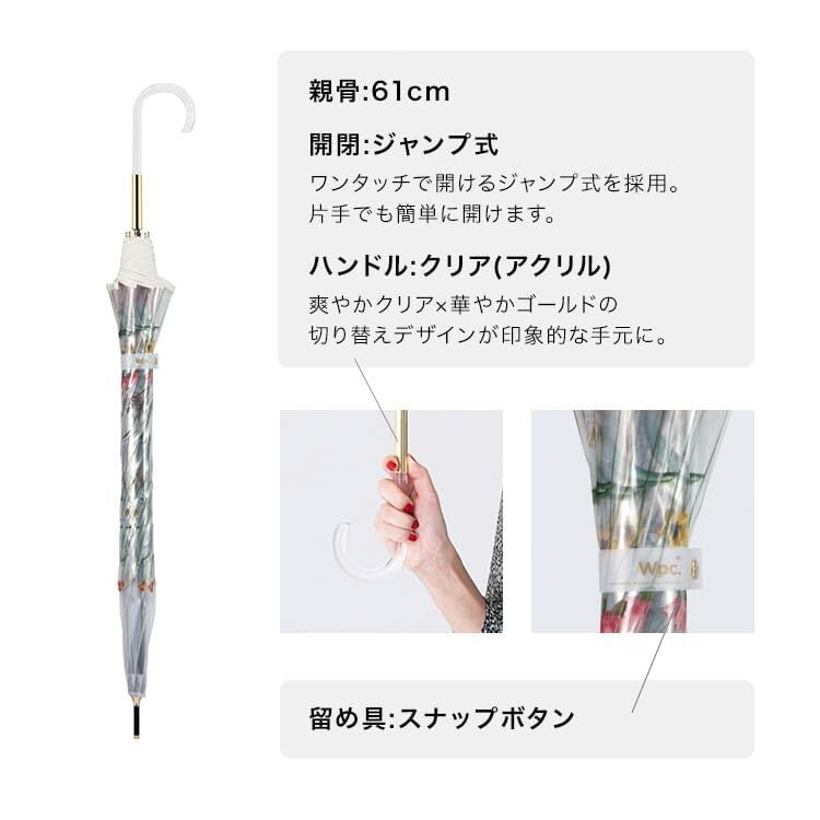 【新着商品】Wpc. 雨傘 [ビニール傘] 刺繍風アンブレラ ブルー 長傘 親骨61cm 長く使える 撥水 レディース ジャンプ傘 大きい 花柄 フラワー インスタ 映え フォトジェニック 透明 丈夫 おしゃれ 可愛い 女性 通勤 通学 PT-EM02-001